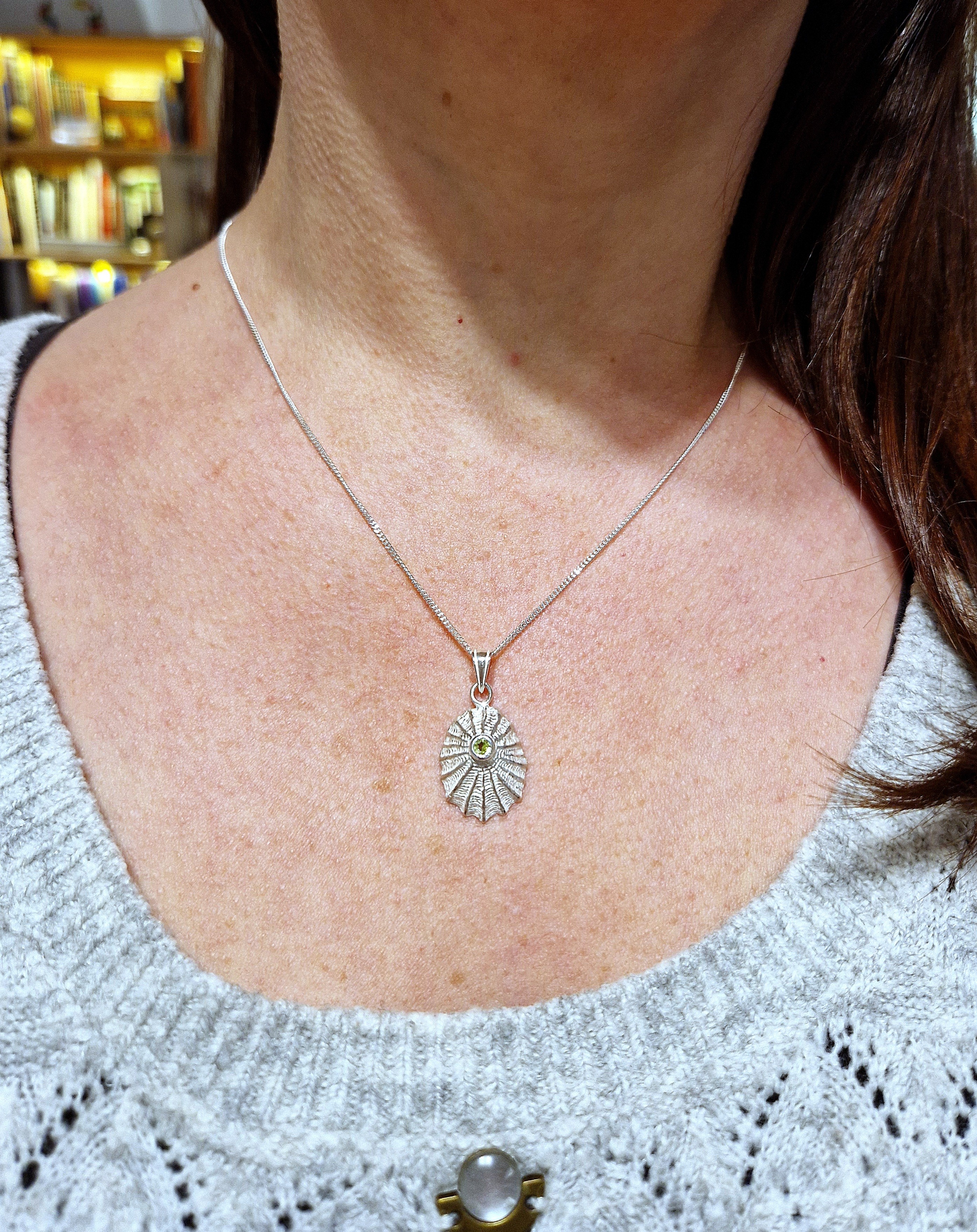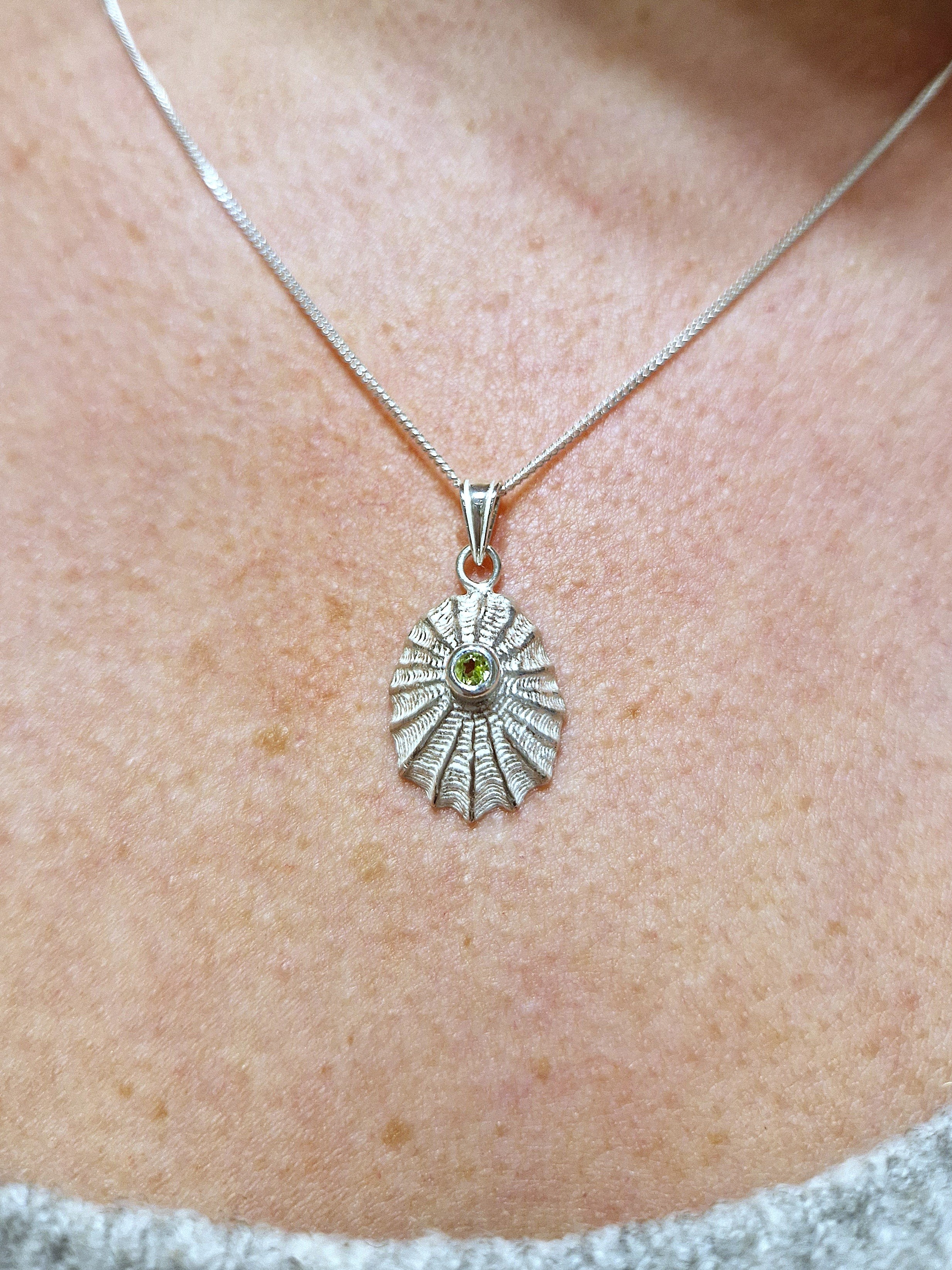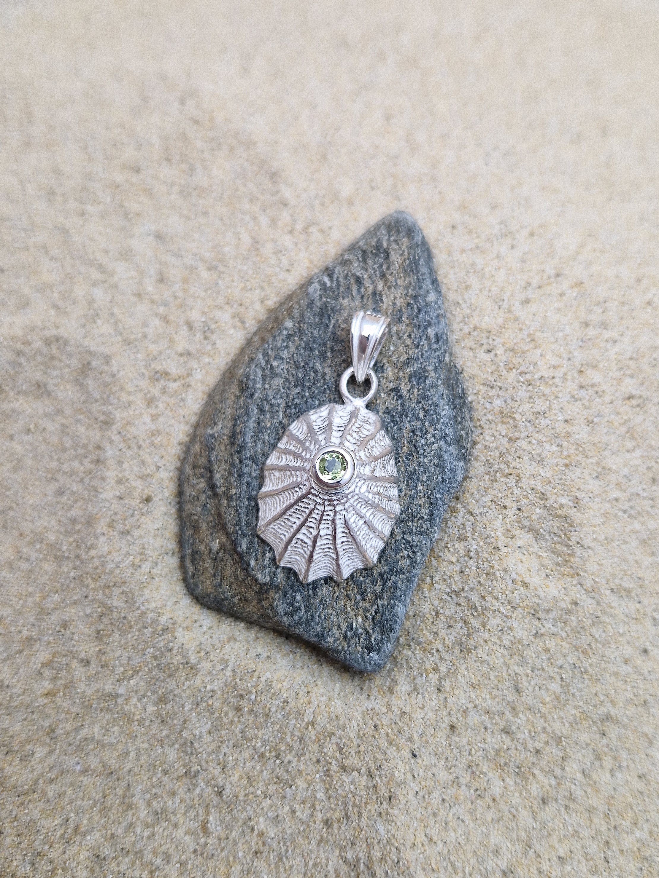 Pendentif Patelle de la collection "Trésors d'ar Mor" en argent 925°/°° et péridot, chaîne non comprise.